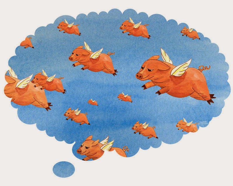 I think I labor over the caption more than the image. In the case of “dream,” the image came quite easily but I can’t really explain why. Twisted free association, I guess. Dreams are like that, sometimes meaningful and sometimes fluffy; I think there is a concept here, of fulfilling seemingly impossible dreams. Or maybe, just flying pigs.